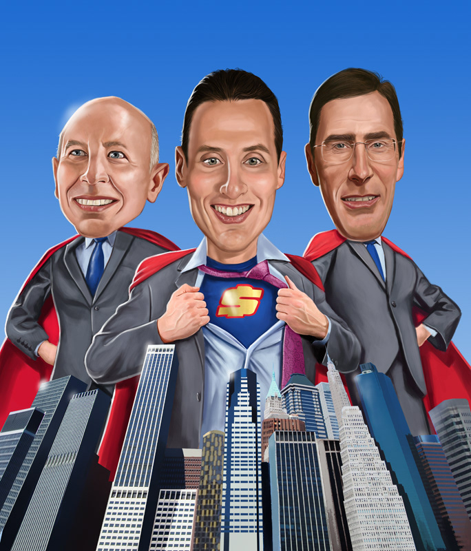 Here's my latest cover for The Mortgage Observer's Top 50 in Commercial Real Estate Finance issue. Luckily, I only had to paint the top three. The editor wanted to portray them as superheroes hovering over the city. Thanks to AD Lauren Draper for the assignment.